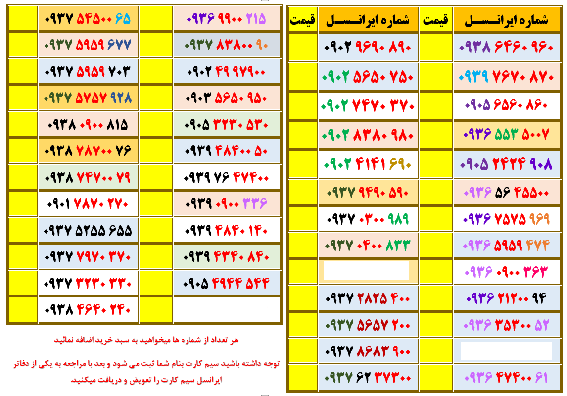 خطوط موجود ایرانسل آپدیت 15 آبان 1404